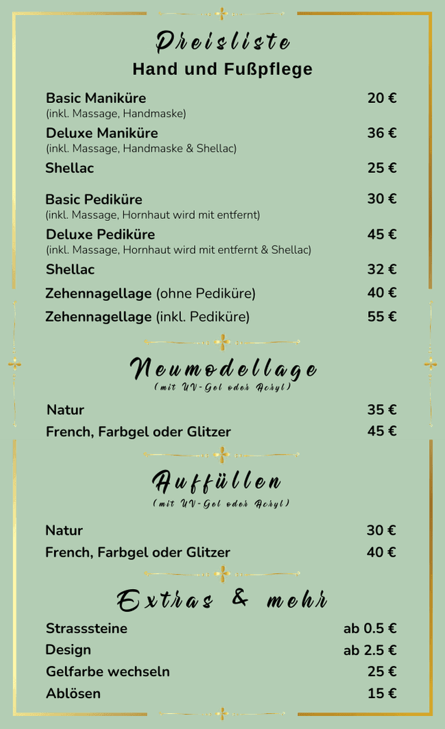 Wir verwenden ausschließlich geprüfte, hochwertige Produkte, die Ihre Nägel schützen und gleichzeitig für ein strahlendes Finish sorgen. Ihre Gesundheit und Sicherheit stehen bei uns an erster Stelle.