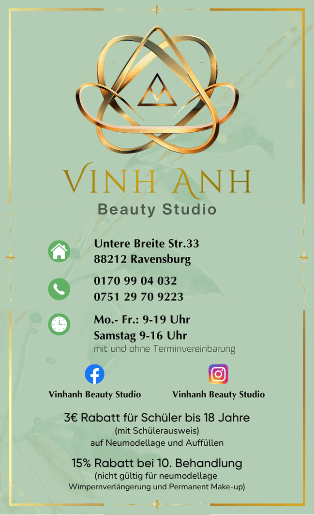 Vereinbaren Sie noch heute einen Termin, um das Beste an Erfahrung im Vinhanh Beauty Studio zu erleben.